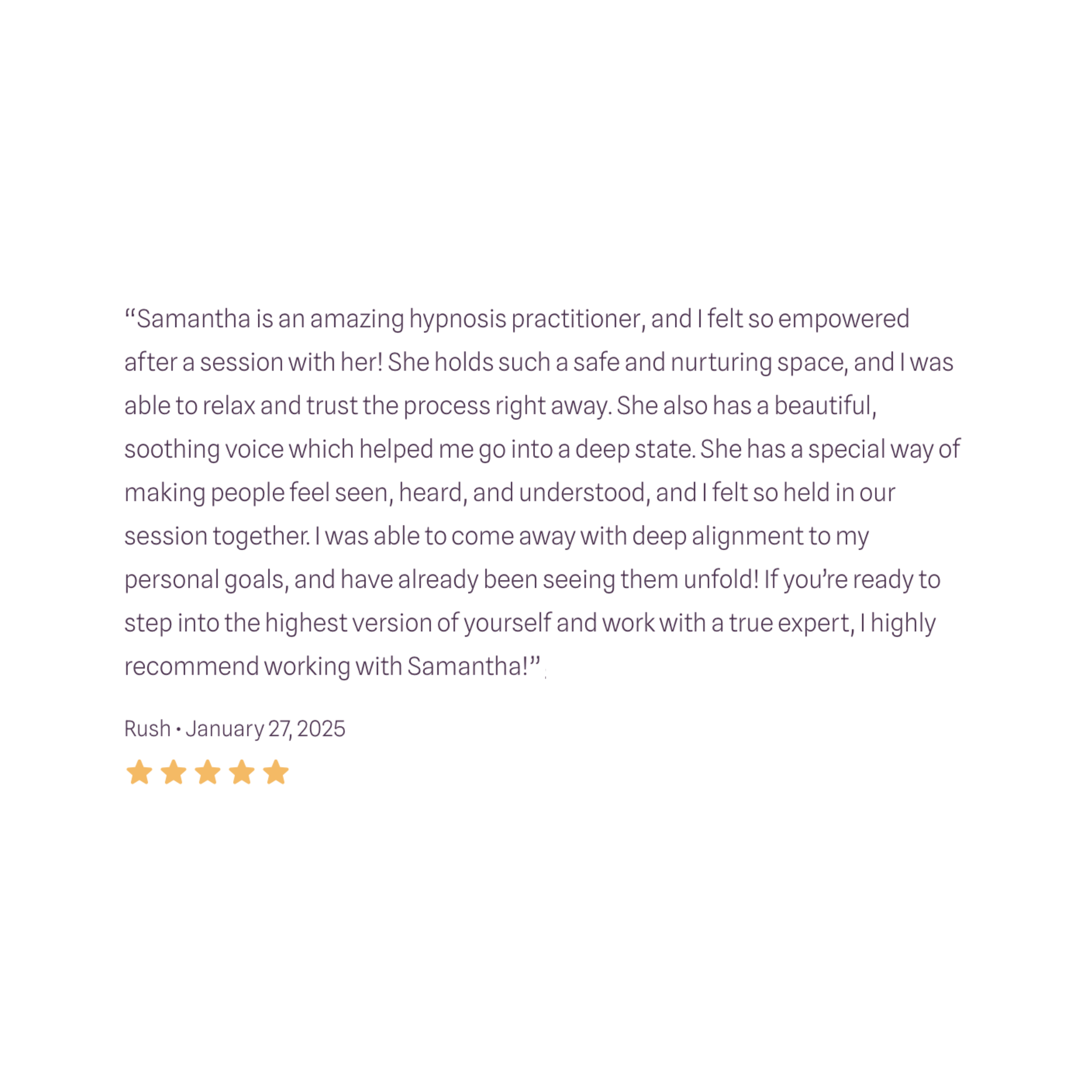 Samantha has supported hundreds of women and men from inception of an idea, to bringing their businesses or children into the world. If you’d like to learn how Integral Hypnotherapy and Coaching can support you, book a 15 min call with Samantha to learn more.